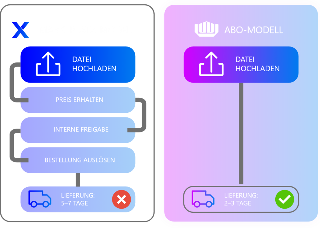 Mit unserem Monats-Abo sparst du dir teure Einzelaufträge und Investitionen in spezialisierte Maschinen.